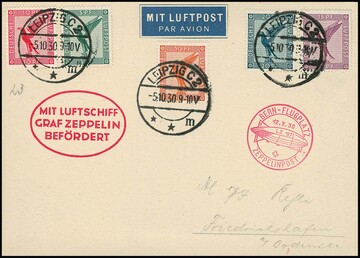 Fahrt nach Nürnberg 1931, sowohl Bordpostkarte als auch Karte ab Nürnberg-Fürth je mit 1 RM Zeppelin, ferner Bordpostkarte nach Nürnberg, Sieger 860,-