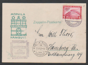 Zürichfahrt 1931, Bordpostkarte mit 1 RM Zeppelin (kl. Mgl.), Abwurf Zürich