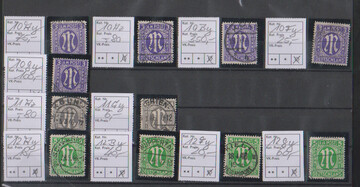 Englischer Druck, mit Ausnahme der 6 Pfg. in Zähnung "C" alle anderen Zähnungen "A" bis "G", inkl. Nr. 10B und 13E, komplett gestempelt (36 versch. Werte), sign. bzw. Fotoexp. Hettler. Mi. 2020,-