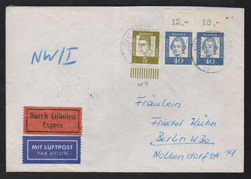 40 Pfg. Lessing im waager. Paar als MeF auf Lupo-Überseebrief, Mi. "-.-", sowie im waager. Paar vom Oberrand, nebst 5 Pfg., auf gef. Lupo-Expreßbrief (Mi. 200,-)
