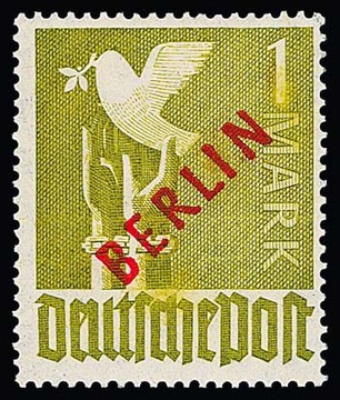 1 DM Rotaufdruck mit Aufdruckfehler "N von BERLIN oben verdünnt" ungebraucht, Fotoexp. Schlegel. Mi. rund 1000,-