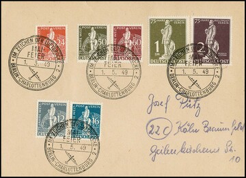 1 DM Rotaufdruck, tadellos gestempeltes Bedarfsstück, tief sign. Schlegel. Mi. 550,-