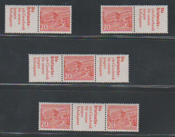 20 Pfg. Bauten, Zusammendrucke "Schulsparer", W17 bis 20, komplett postfrisch, Mi. 930,-