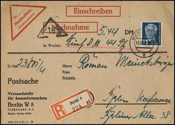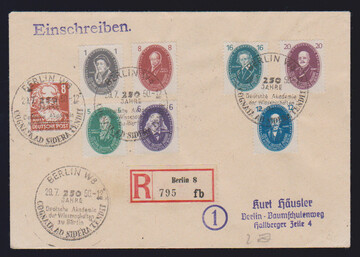 Pieck kpl. auf drei sauber gest. R-/R-Expreßbriefen, sowie Akademie auf zwei Orts-R-Briefen aus Berlin