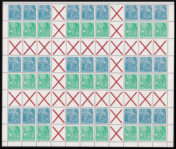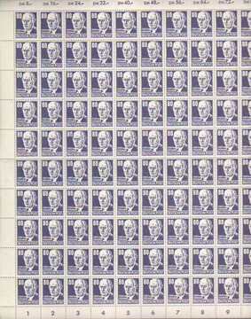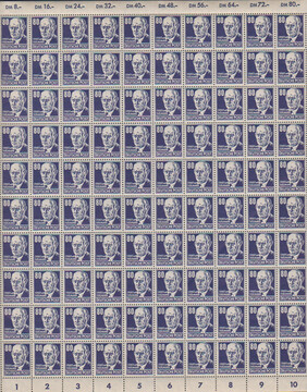 80 Pfg. Köpfe im kompletten postfrischen Bogen mit zweimal Plattenfehler II und einmal IV. Mi. lose 1792,- + Ränder etc.