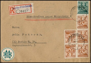 Fünf bessere Belege: Nr. 918, 925, 928/929 und 933 auf R-Brief eigenhändig mit Rsch. aus Glauchau, Nr. 920 u. 933 auf R-Karte, Nr. 925(2), 933 und 937(3) auf Wertbrief, 935 und 937 auf R-Brief-Adresse (ab 500gr.) aus Berlin, sowie Nr. 949 u. 951(5) auf Orts-R-Brief gg. Rsch. (!) aus Berlin