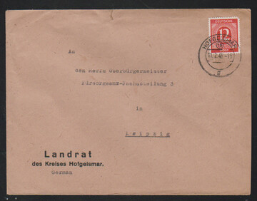 8 Pfg. als portoger. EF auf Februar-Ortsbrief aus Leipzig, 28.2.46 (1. Periode, Mi. 450,-)