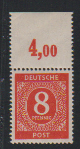 8 Pfg. orangerot, postfrisches Plattendruck-Oberrandstück, dgz, Fotoexp. Bernhöft. Mi. 200,-