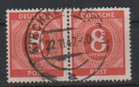 8 Pfg. orangerot im rundgest. waager. Paar, sign. ArGe. Mi. 280,-