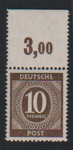 10 Pfg. schwarzorangebraun als postfrisches Plattendruck-Oberrandstück, durchgez., sign. ArGe. Mi. 450,-
