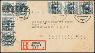 Arbeiter-Band-/Netzaufdrucke, fünf bessere Belege, dabei Nr. 40I als MeF per sieben, 42II als EF ("Geschäftspapiere") und MeF, A49II als EF auf R-Brief, sowie Nr. 41I per zwei in MiF