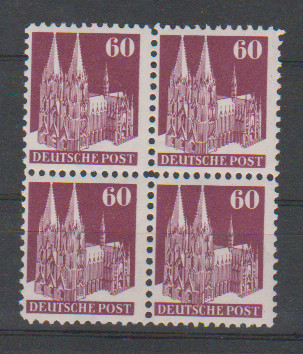 60 Pfg. dunkelbraunlila, postfrischer Viererblock, Mi. 400,-