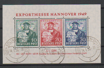 Exportmesse-Block mit Tagesstempel "Solingen-Ohligs", sign. A. Schlegel. Mi. 350,-