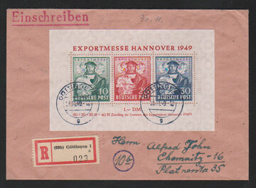Exportmesse-Block auf portoger. R-Brief, Mi. 450,-