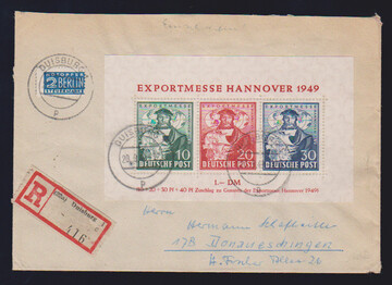 Exportmesse-Block als EF auf R-Brief aus Duisburg, Mi. 450,-