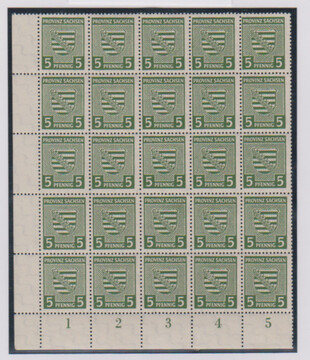 5 Pfg. graugrün im postfrischen 25er-Block aus der linken unteren Bogenecke, Attest Ströh. Mi. 1000,- +