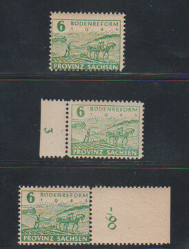 6 Pfg. Bodenreform, vierseitig gezähnt, Papiere w, x und y je postfrisch, sign. Jasch. Mi. 460,-