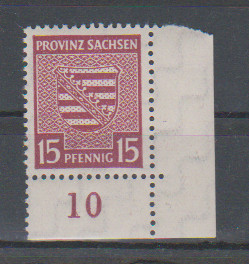 30 Pfg. Provinzwappen im postfrischen Randpaar (nur im Bogenrand leichter Fingerabdruck), die Randmarke dreiseitig ungezähnt (siehe Foto), Attest Jasch. Mi. 800,-