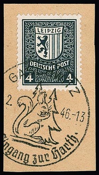 5 Pfg. Abschied, x-Papier, im Paar auf Orts-Postkarte von Leipzig, sign. Ströh. Mi. 450,-