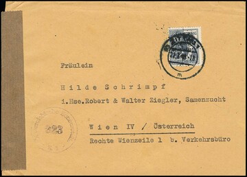80 Pfg. Maschinen-Aufdruck als sehr seltene Einzelfrankatur-Variante auf Auslands-Zensur-Doppelbrief von Zittau, 22.7.48, nach Wien/Österreich