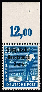 20 Pfg. Maschinenaufdruck, gute Farbe "graukobalt" als tadellos postfrisches Plattendruck-Oberrandstück, nicht durchgezähnt, neues Attest Ruscher. Mi. 1200,-