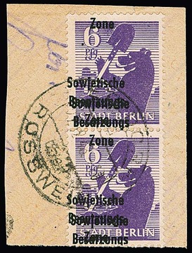 6 Pfg. Maschinenaufdruck, senkrechtes Paar mit doppeltem Aufdruck auf Briefstück, sign. Weigelt und Fotoexp. Ruscher. Michel ohne Bewertung