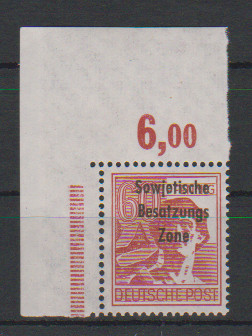60 Pfg. rotkarmin, postfrische linke obere Bogenecke, Plattendruck, nicht durchgezähnt, Mi. 250,-