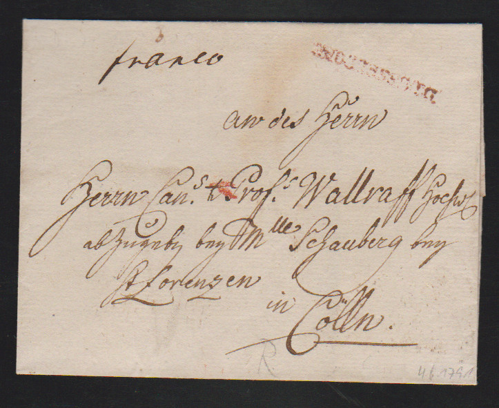 "Coeln" (4-16M), der sehr seltene HE rs. als Ankunftsstempel auf Brief (mit ausgeschnittener Frankatur) aus England, Mai 1874, Spal. 800 P.