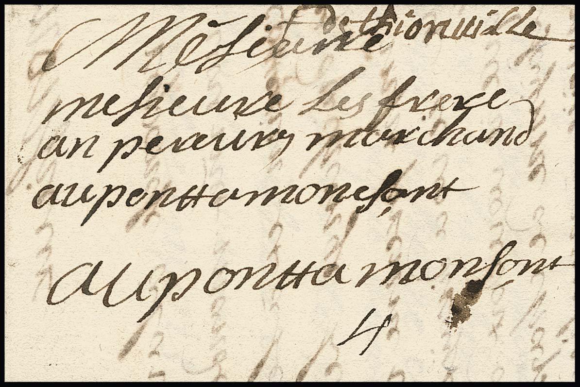 "Thionville", 1719, sehr frühe hs. Aufgabe "de thionville" klar auf Brief mit Inhalt (Geschäftsbrief)