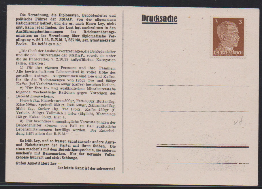 Britische Propagandafälschung für Deutschland, 3 Pfg. Hitler auf Karte "Dr. Robert Ley", Fotoexp. Pieles. Mi. 200,-