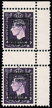 2 P. Georg, gestempeltes Zusammendruck "Sta. Lucia" und "Singapore" vom linken Bogenrand, Mi. lose 280,- +