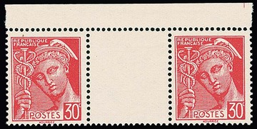 Britische Fälschungen für das von Deutschland besetzte Frankreich, 30 C. Merkur im postfrischen Zwischensteg-Oberrandpaar, Mi. 260,-