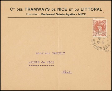 Fälschungen französischer Widerstandsorganisationen für das von Deutschland besetzte Frankreich, 1,50 Fr. Petain (mit den üblichen Gummispuren) auf sauberem Bedarfsbrief aus Cannes, 2.8.1943. Gelaufene Briefe dieser Marke sind selten und im Michel schon lose gestempelt nur mit "-.-" notiert. Sign. Scheller und Attest Pieles