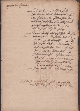 "Wartenburg" (Kemberg), 1574, dekor. mehrseitiger Schnörkelbrief nach Dresden