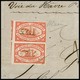 Transatlantik-Schiffspost Gauthier & Freres, 1855/56, die rote Marke für die Linien von Le Havre nach New York und Rio de Janeiro im senkrechten Paar auf großem Briefteil mit Schreibschrift-L1 "G.F.& C." (von Gauthier & Freres). Obere Marke oben rechts kurz berührt, sonst überrandig und gut. Es handelt sich um die seltensten Schiffspostmarken der Klassik weltweit. Während es von der berühmten "Lady Mc Leod" sicher mehr als 50 Exemplare gibt, sind von den Gauthier-Marken lediglich zwei Exemplare der blauen Marke (wahrscheinlich für Post nach Europa, diese u.a. auf einem Portugal-Brief registriert) und acht Exemplare der vorliegenden roten Marke (wahrscheinlich für Post nach ausserhalb Europas) bekannt, davon ist das vorliegende das einzige Paar, dieses bereits ausführlich beschrieben als Weltseltenheit im berühmten Buch "Seltene Briefmarken" von L.N. und M. Williams. Attest BPA, sign. Diena. Provenienz: Ritchie Bodily (1961), Slg. D. Kelly, Slg. Steindler (Robson Lowe 1972, Titelfoto, Käufer für 6500,- SFr. + Aufg. war R. Mondolfo), Slg. "Mayflower" (D. Feldman, Zürich, 1983), Robson Lowe 1992 (Titelfoto), D. Feldman 1993 (Zuschlag 16.000,- SFr. + Aufg.)