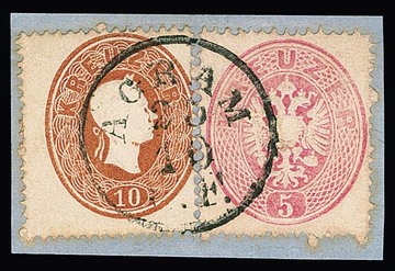 10 Kr. braun in Mischfrankatur mit 5 Kr. rosa auf Prachtbriefstück mit K1 "Agram", Fotoexp. Eichele