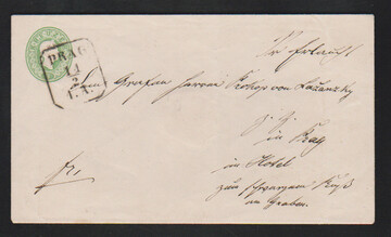 Ganzsache 3 Kr. grün als Pracht-Ortscouvert (unbed. Druckspuren) mit Ra4 von Prag, Mi. 280,-