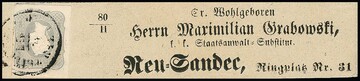 Zeitungsmarke 1,05 Kr. hellgrau auf kleiner Pracht-Vordruckschleife, Mi. 550,-