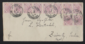 1 H. per zehn als hohe Mehrfach-Frankatur auf Brief 1904 von Graz nach Sachsen