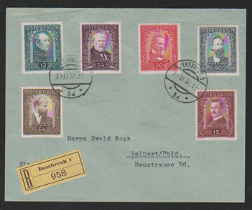 Maler komplett auf nach Deutschland gelaufenem Satz-R-Brief (dieser Mittelfalte ausserhalb)