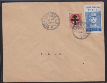 Paris, blaue Befreiungs-Vignette "Petain", nebst 1,50 Fr. Petain mit Aufdruck des Lothringerkreuzes, auf entsprechendem Sondercouvert, Mayer Nr. 4 und 1, Attest Pieles