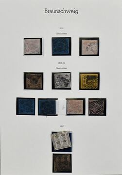 Braunschweig, gest. Sammlung in untersch. Erhaltung, dabei u.a. breitrandiges Prachtstück Nr. 1 mit Altsignatur Thier, Nr. 5-8, 10 gest. u. ungest., überrandige Nr. 12Ab auf Briefstück, 14A, 16A usw. Hoher KW