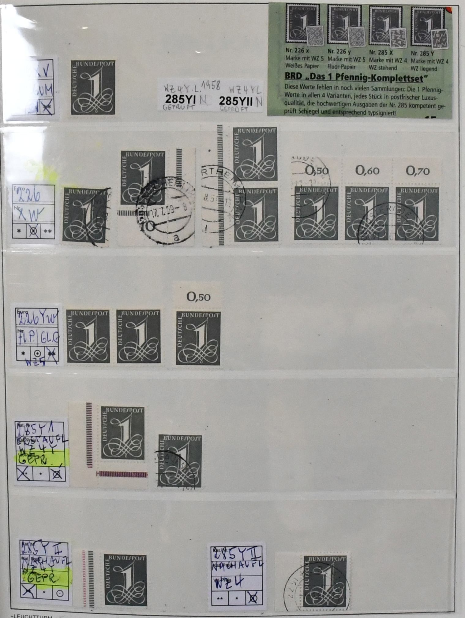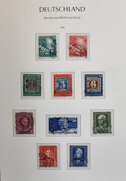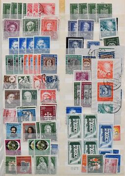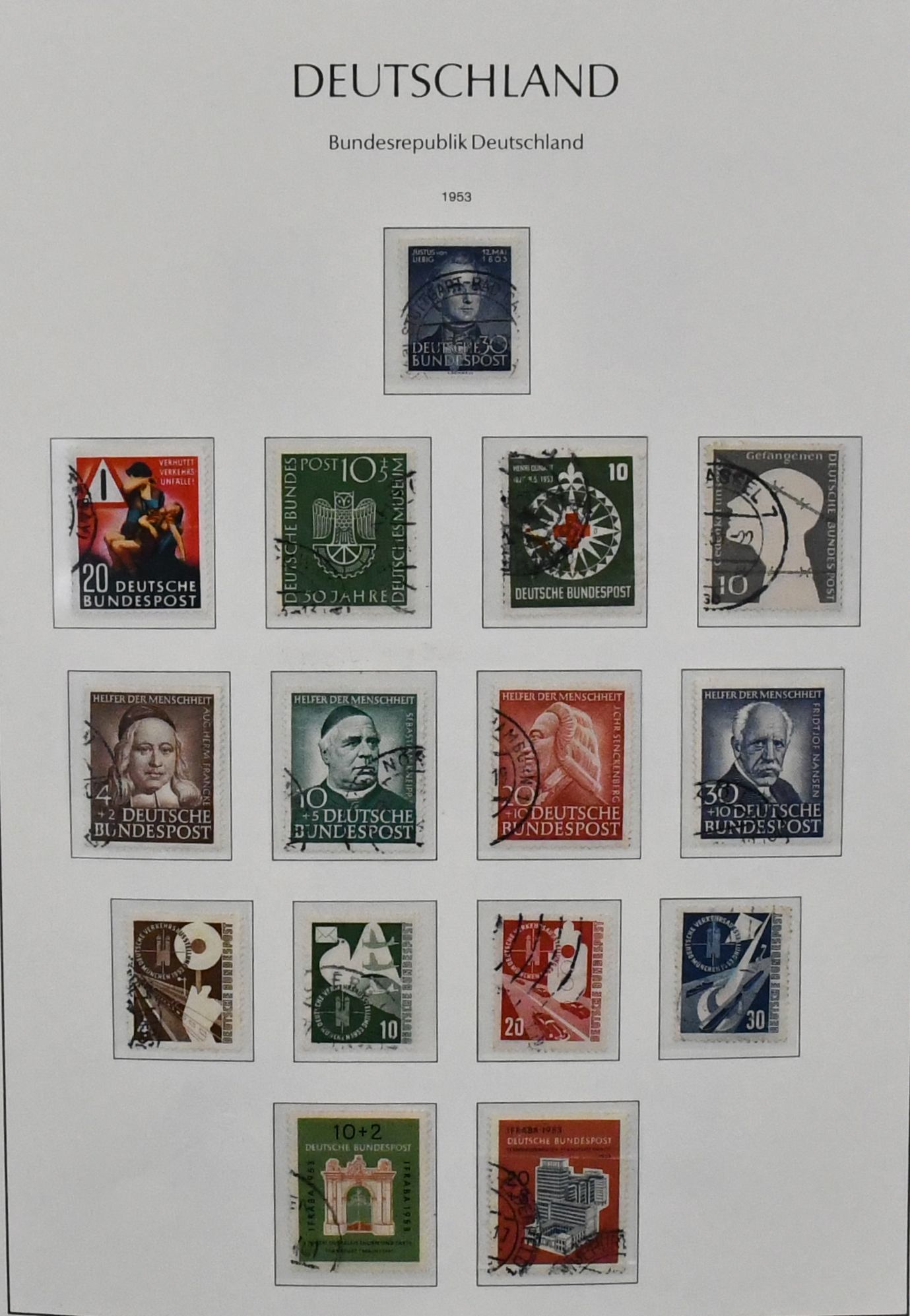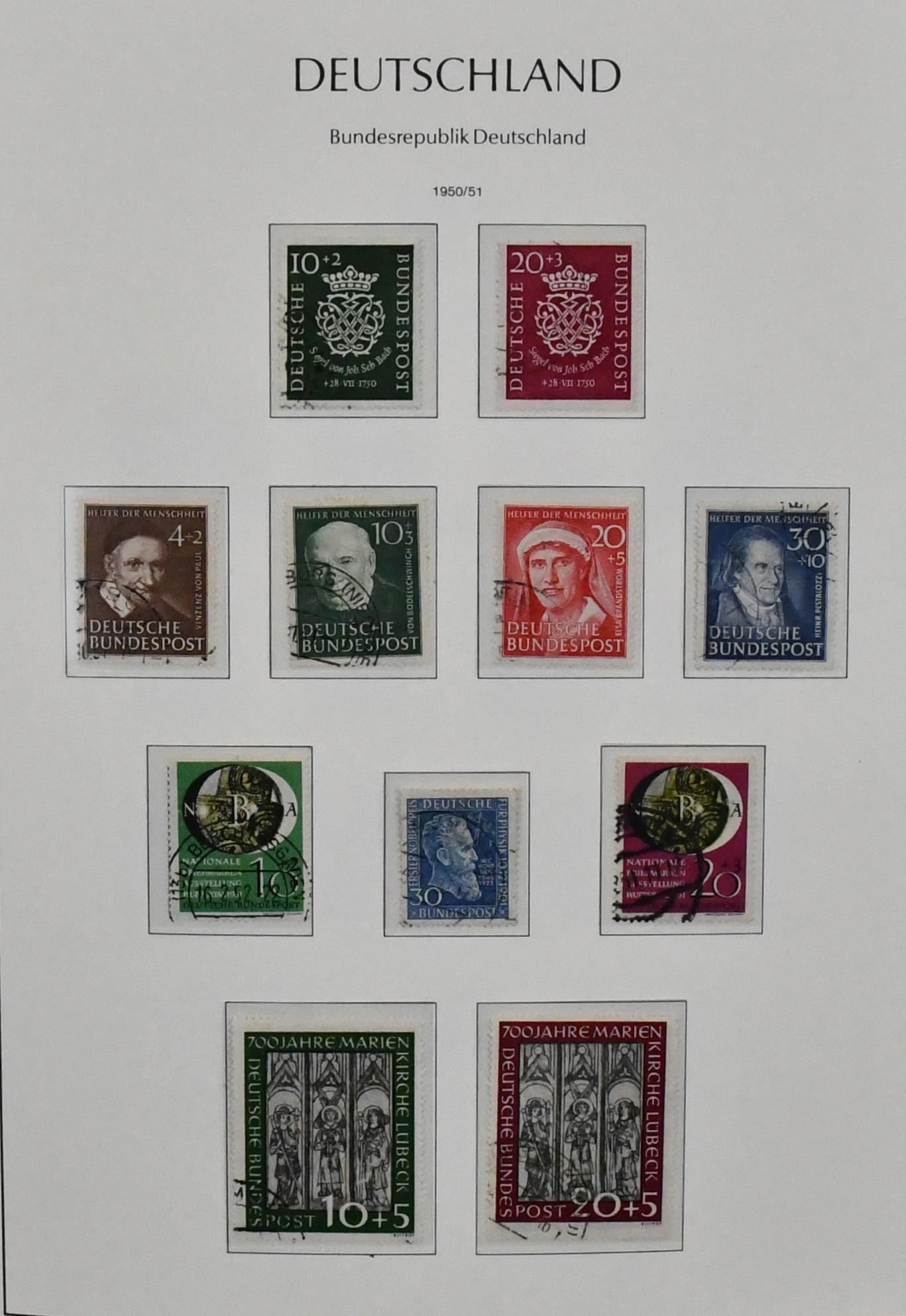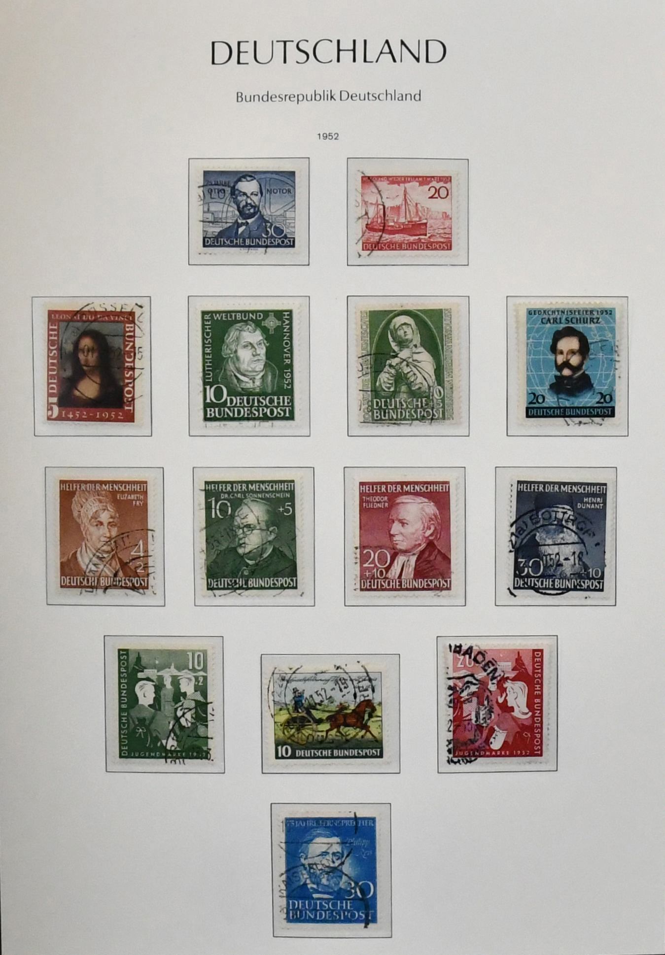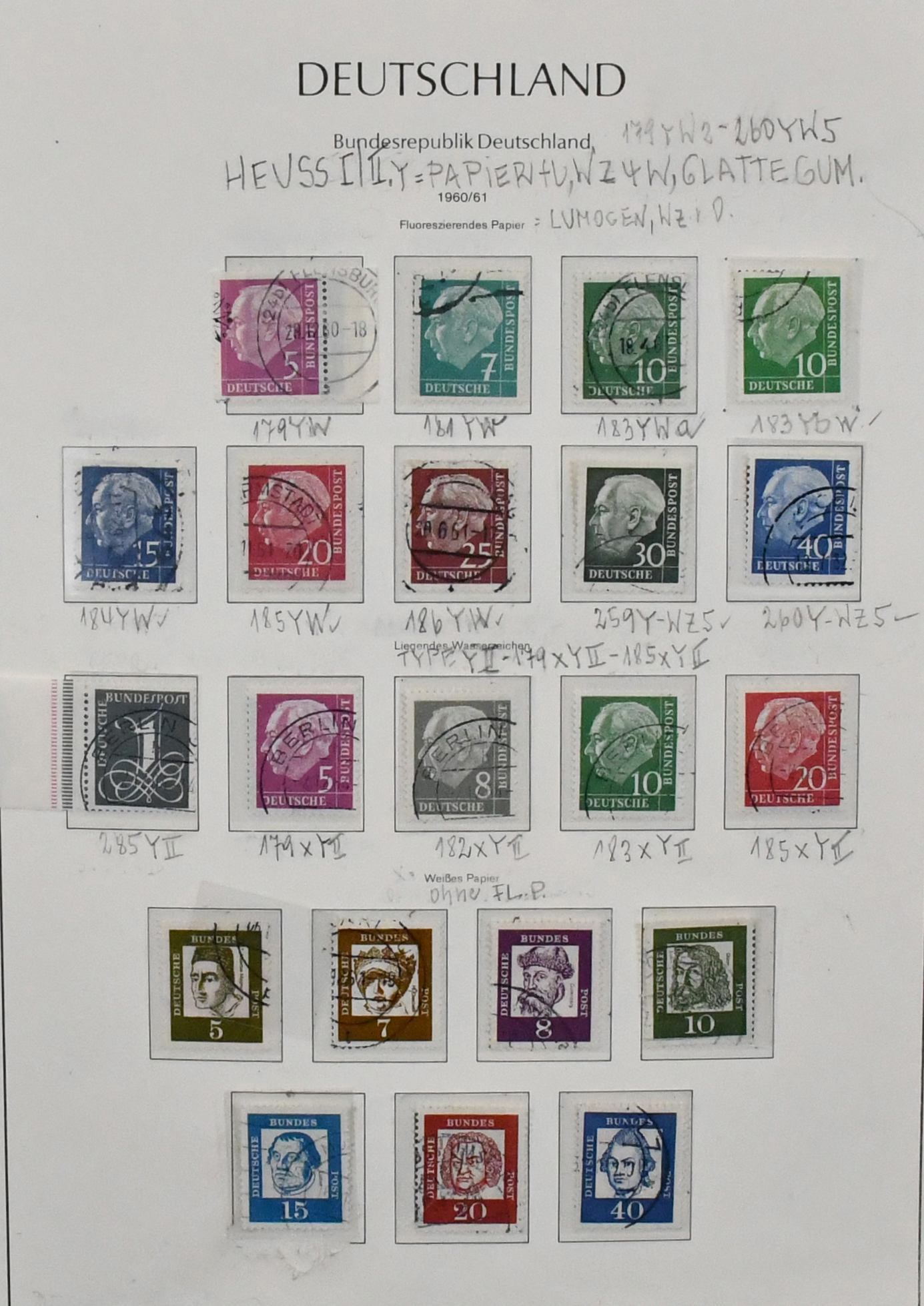 Bund, 1949/2003, gestempelte, ab Nr. 111/12 komplette Slg., neben den Hauptnummern auch Heuss Lumogen und lieg. Wasserzeichen, in drei Schwaneberger Vordruckalben und auf losen Vordrucken. Mi. 5500,-