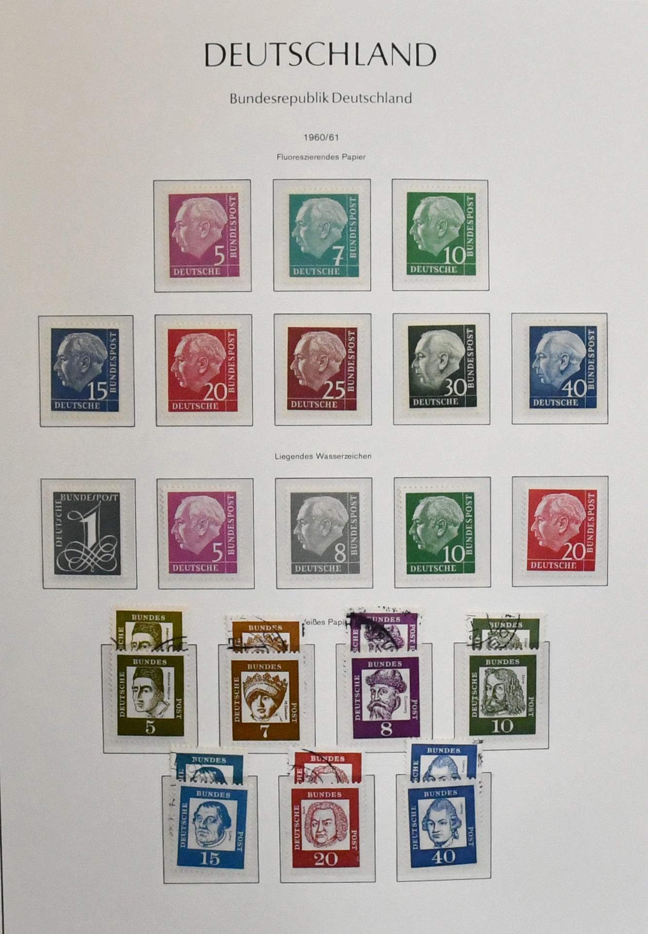 Bund, 1949/2000, kpl. Slg., anfangs gest., inkl. Nr. 111/225 kpl., später meist postfr., u.a. Heuss Lumogen und lieg. Wz. teils sogar sowohl postfr. als auch gest., in zwei neuwertigen Leuchtturm-Vordruckalben. Mi. rund 5500,- plus Alben