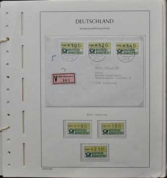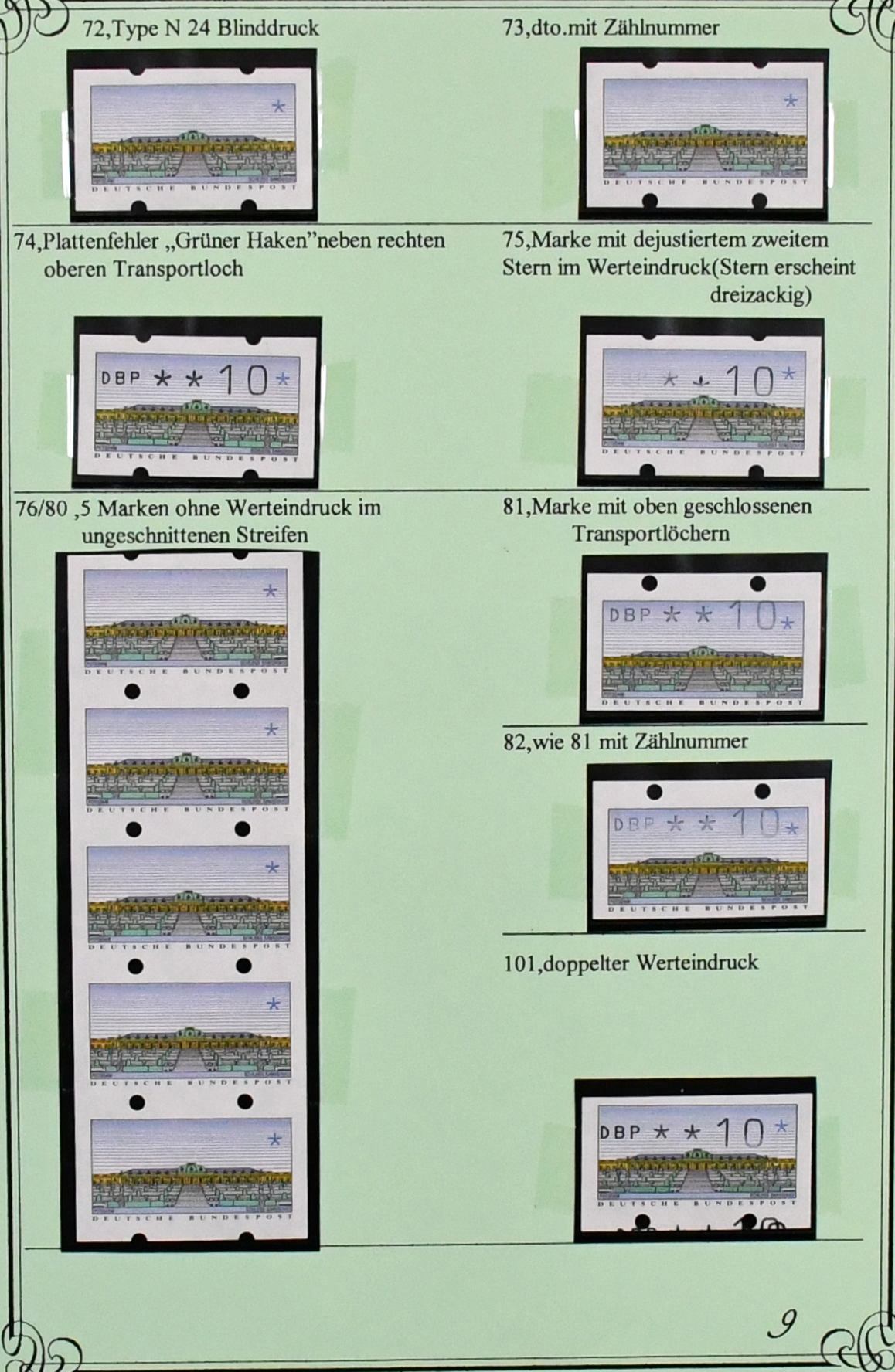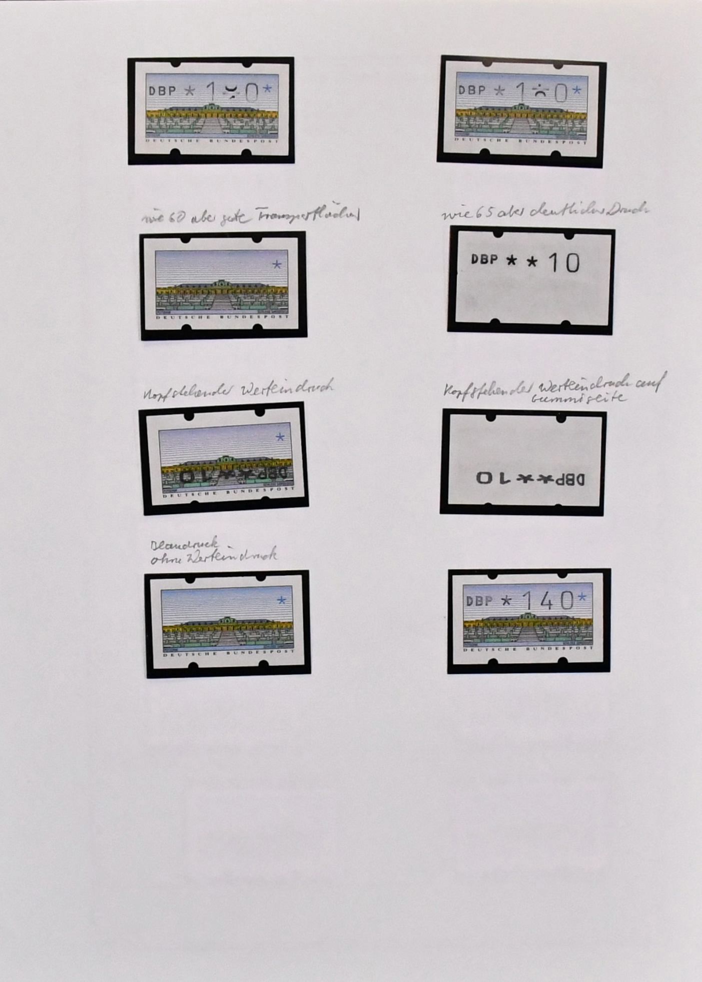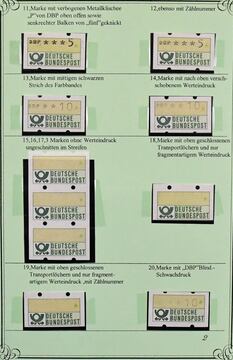 Bund, "Automaten-Marken", Spezialslg. auf selbstgest. Seiten, dabei Einheiten ohne Wert-Eindruck, Besonderheiten der Transportlöcher, Wert-Eindrucke auf der Rückseite etc.