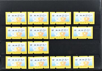 Bund, Automatenmarken der DM-Zeit, postfrische Partie der Nr. 1/3 mit vielen versch. Wertstufen. Der ehemalige Postpreis betrug 700,- DM