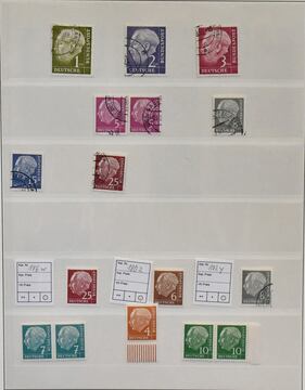 Bund, Heuss-Besonderheiten, Partie mit u.a. gest. Viererblöcken Nr. 194/96 und 261/63 (Mi. zusammen 410,-), Nr. 180z postfr., 182Y gest. (tiefst gepr. Schlegel, Mi. 150,-) usw.