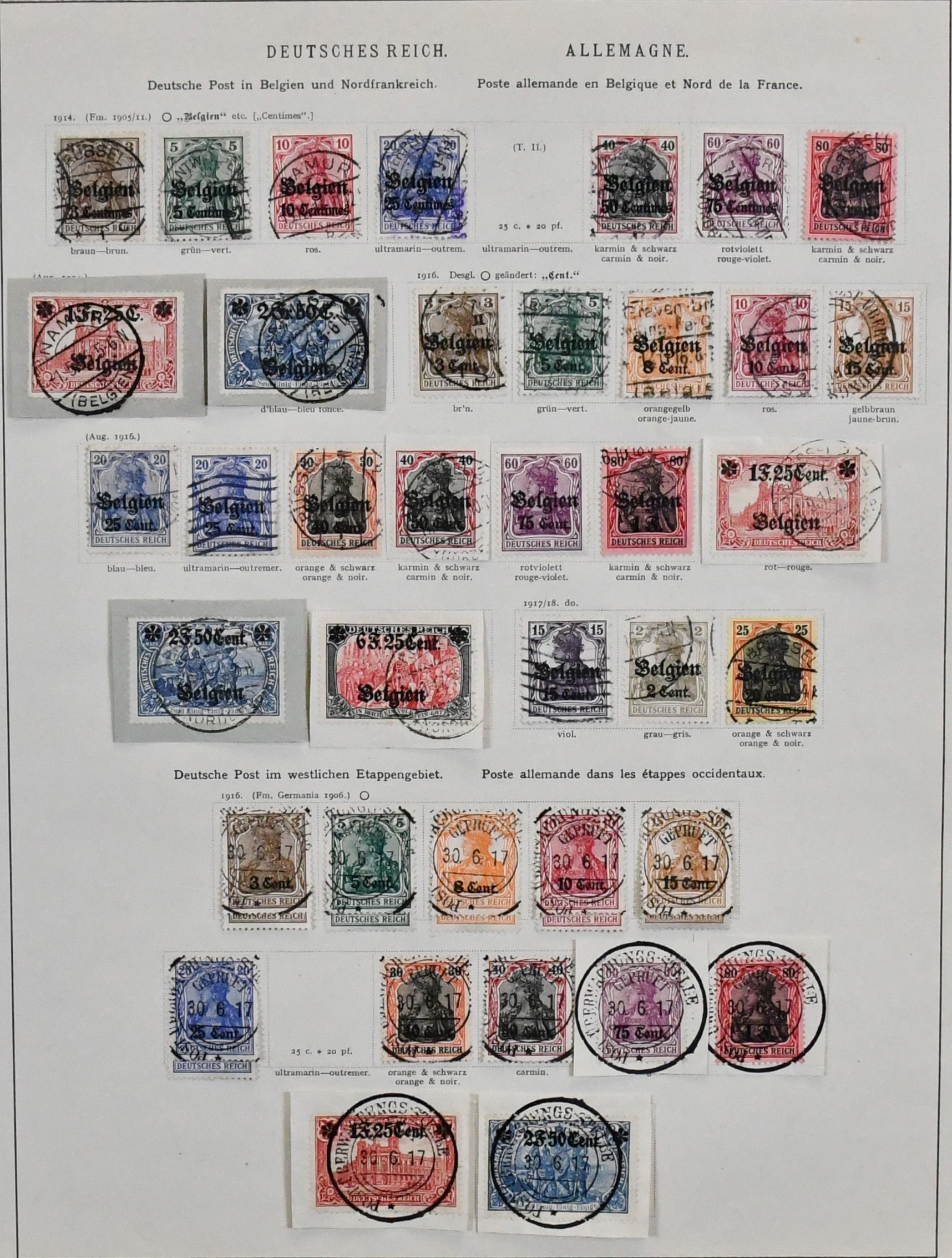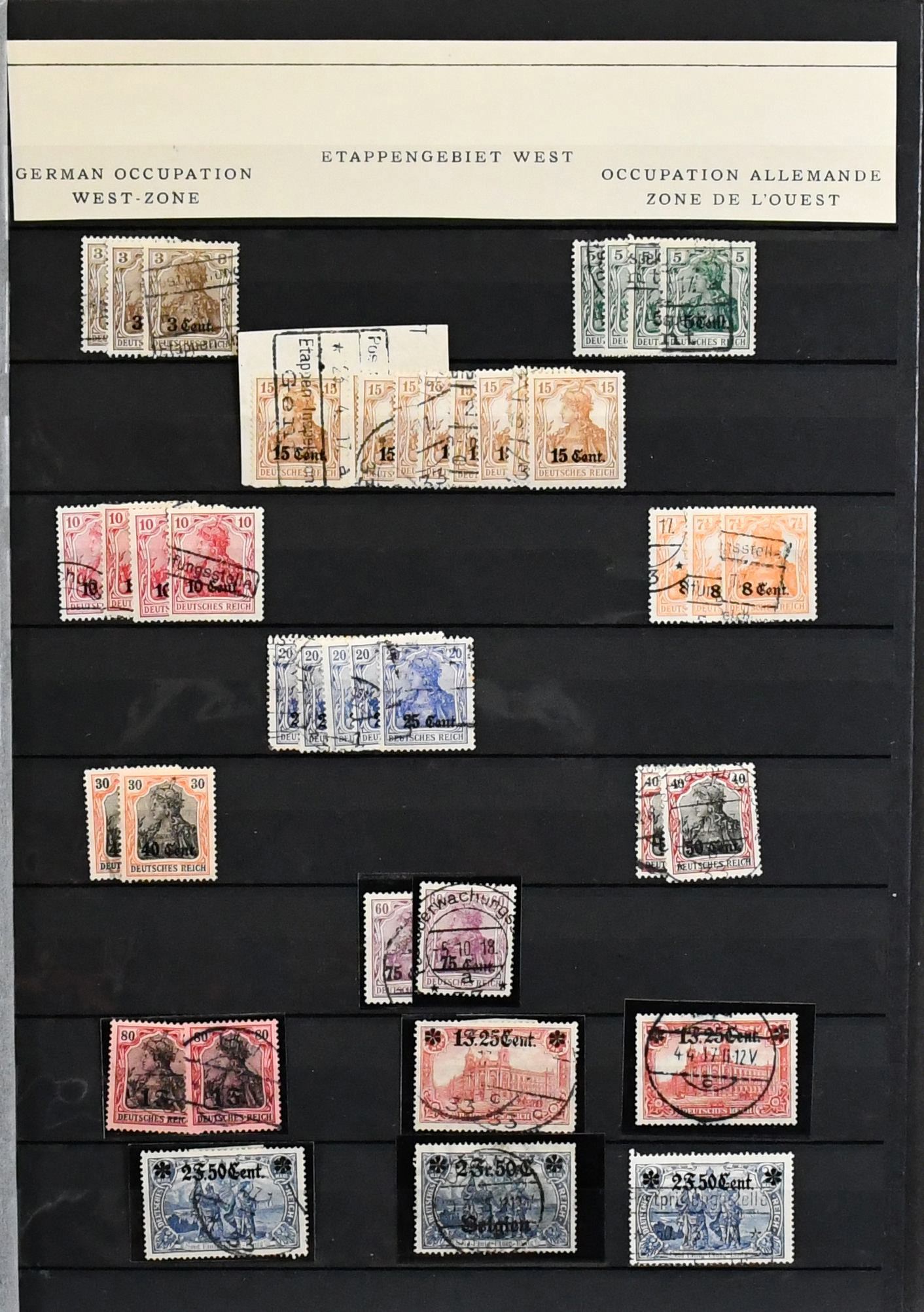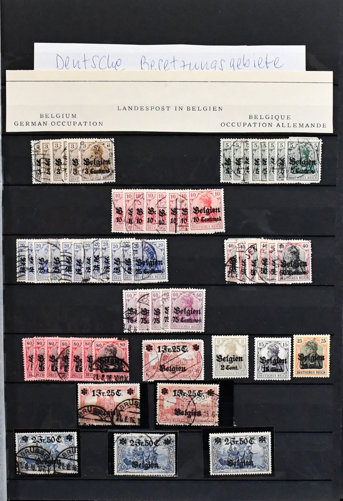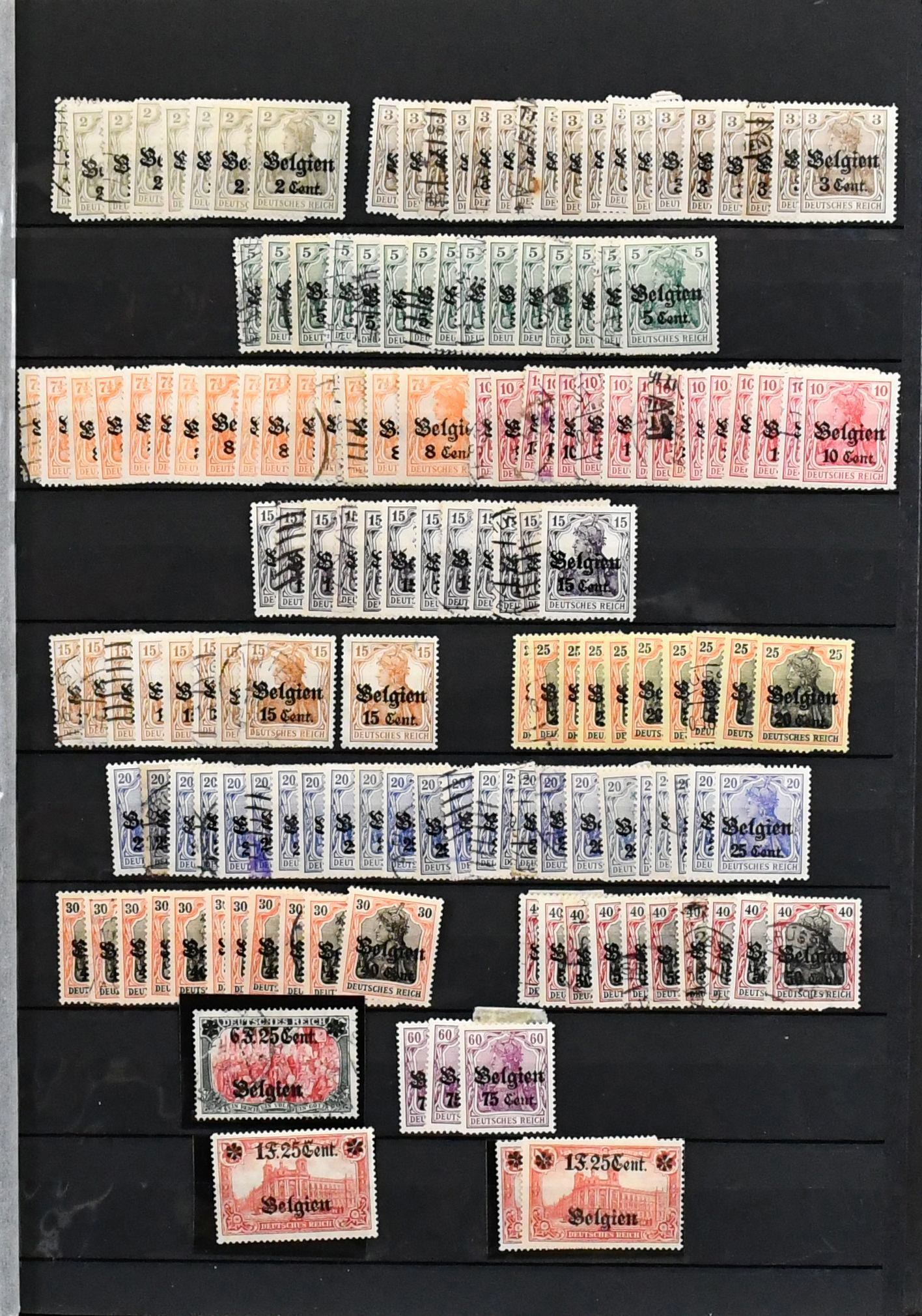Deutsche Bes. I. Wk., Zusammenstellung von über 200 Werten, meist gestempelt, mit Belgien Nr. 1/9 mind. dreimal, Nr. 25, Etappe West Nr. 1/12 zweimal, Nr. 12 sogar dreimal je gest., usw.