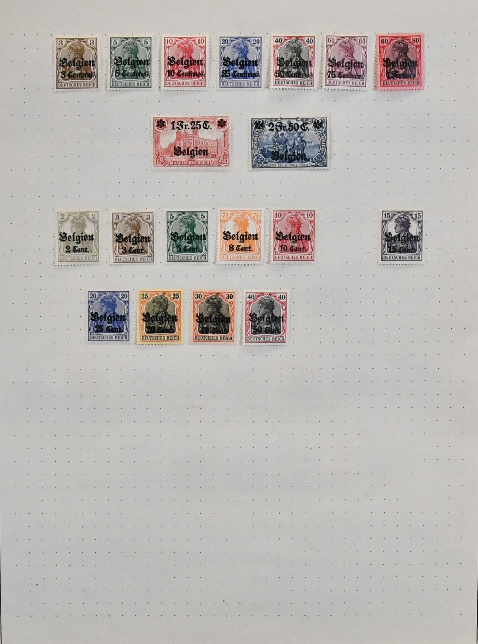 Deutsche Bes. I. Wk., saubere ungebrauchte Zusammenstellung von etwa 360 Werten, mit allen Gebieten, dabei Belgien Nr. 1/25 mind. einmal kpl., Etappe West Nr. 1/12 inkl. viermal Nr. 11, Ob. Ost Nr. 1/12, Polen Nr. 1/16, Rumänien ab Nr. 1/3, mit Porto Nr. 6/7, Zwangszuschlag Nr. 5b usw.