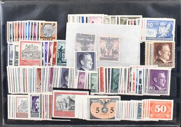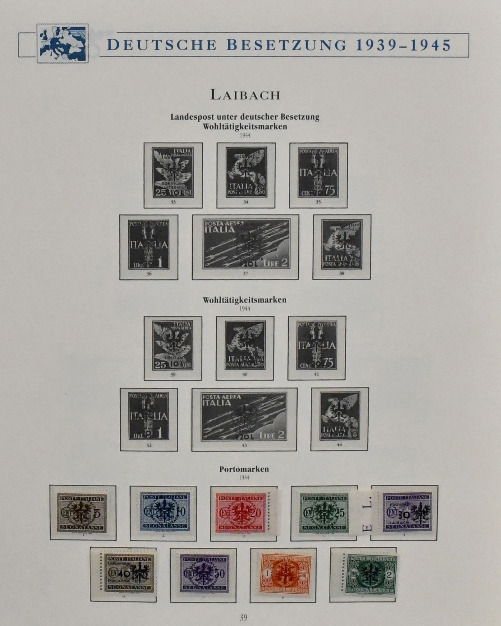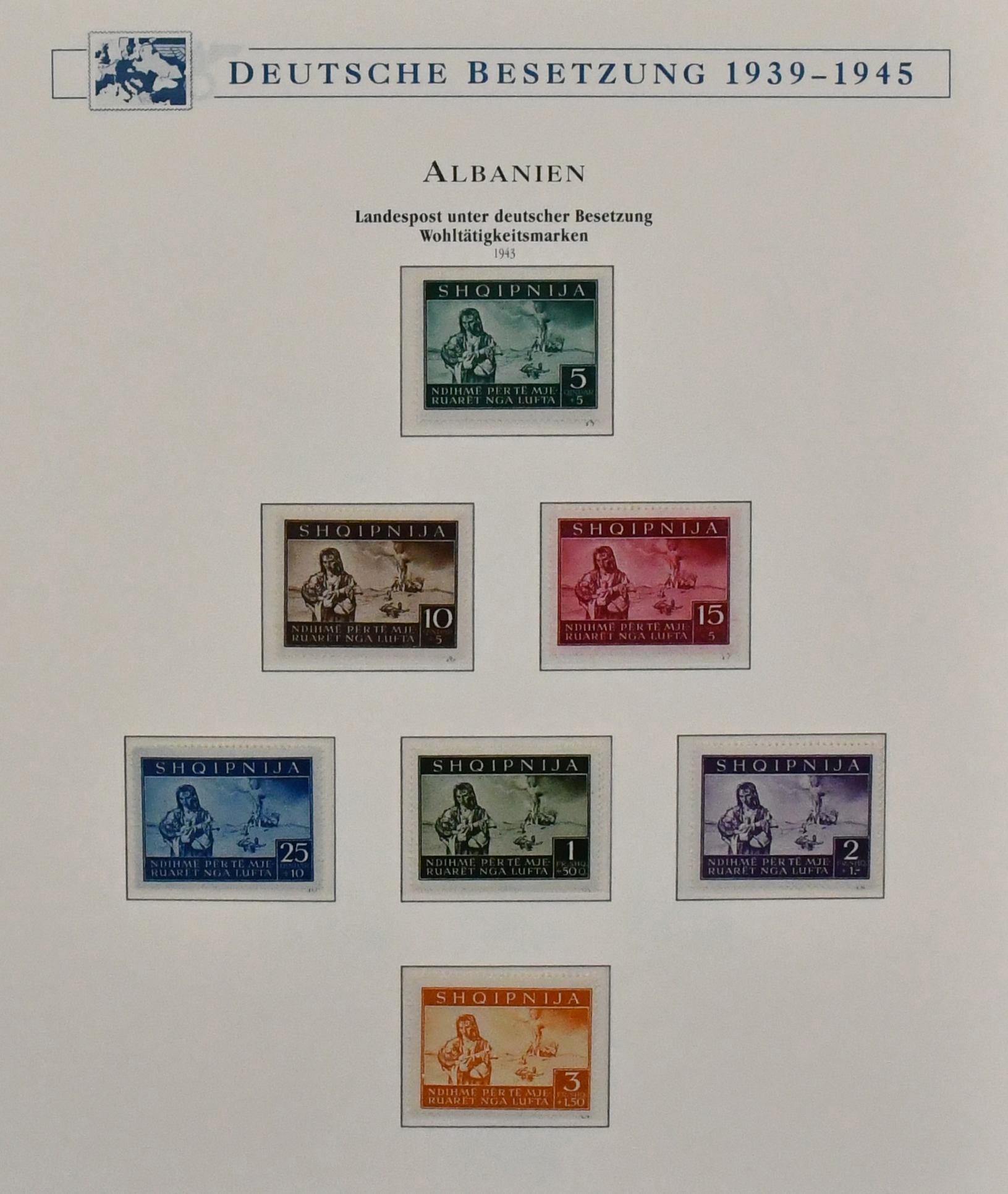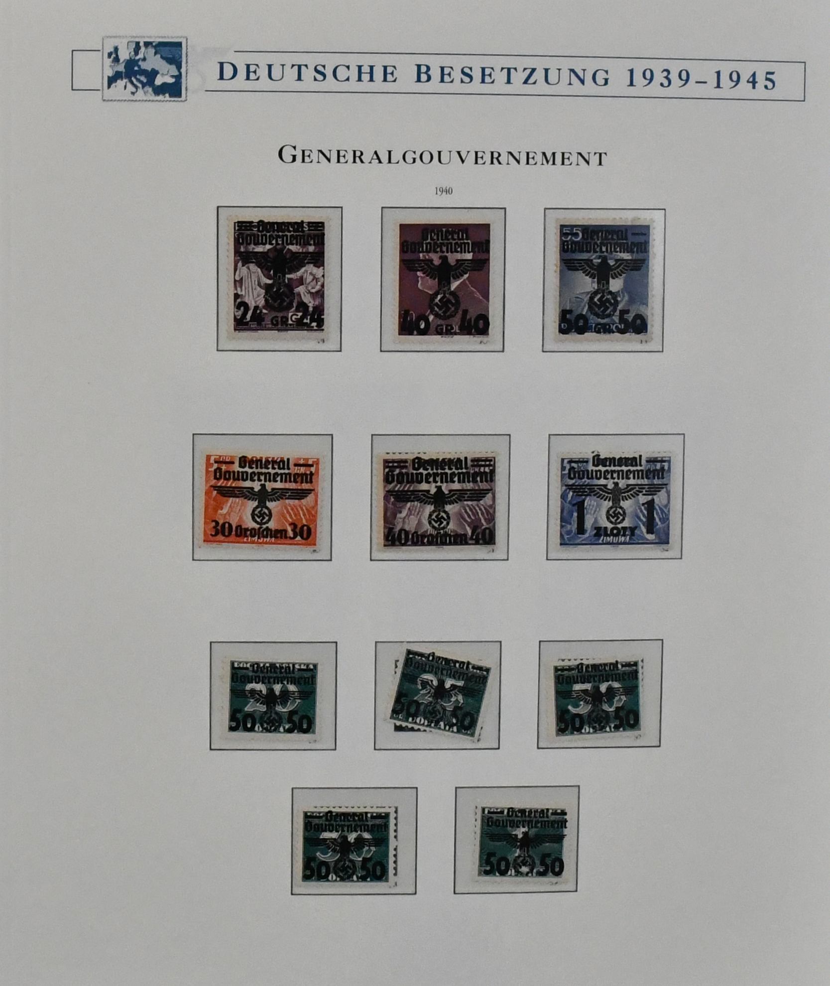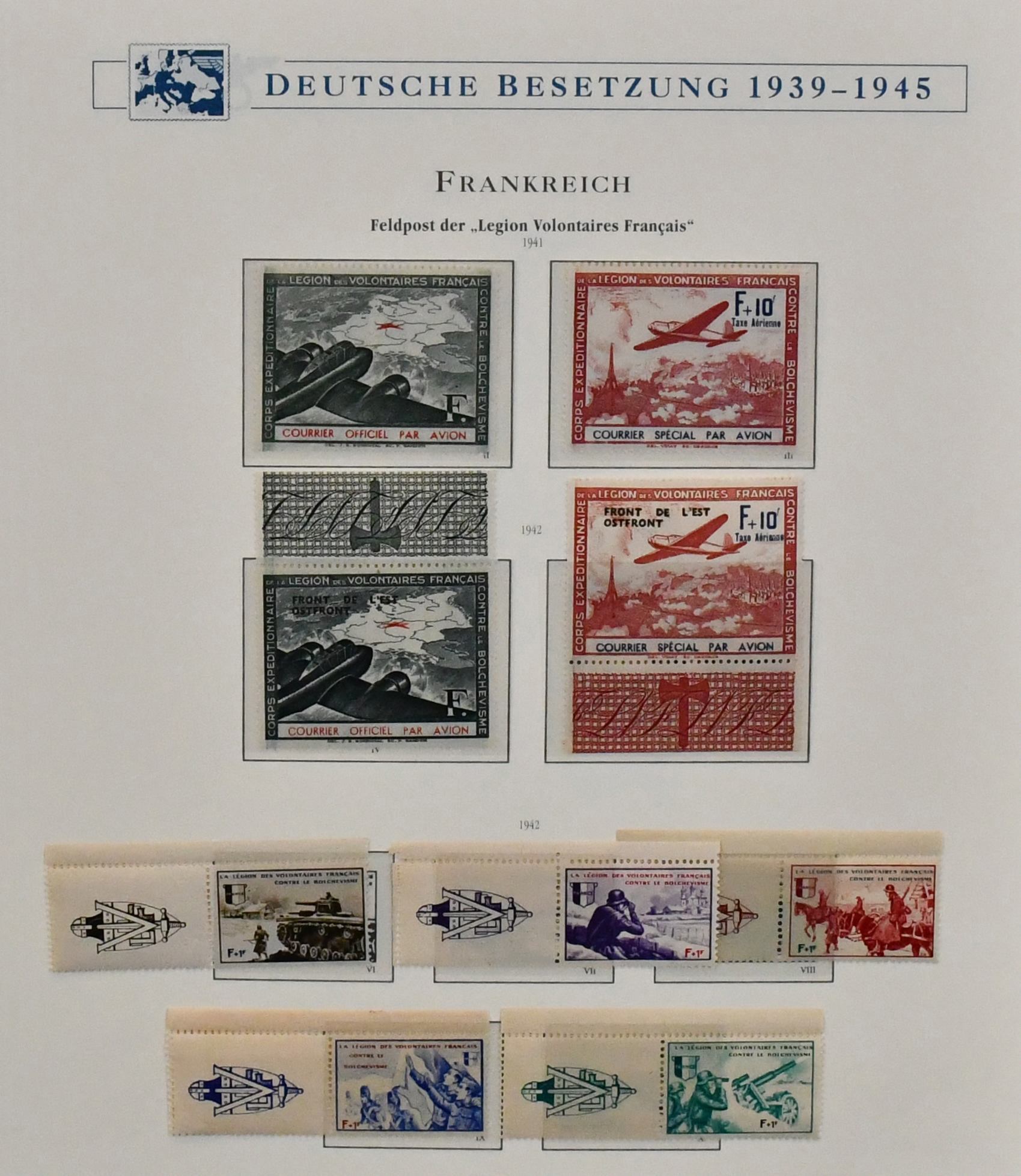 Deutsche Bes. II. Wk., postfr. Slg. im Vordruckalbum, dabei GG und Böhmen und Mähren kpl., Estland, Laibach, Litauen, Serbien usw., ferner Feldpost der franz. Legion mit Nr. II-X